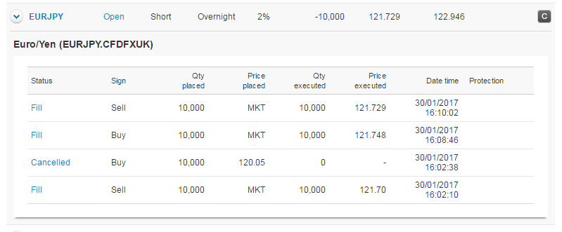 Bid-offer price of the CFD: 1.25803-1.25833 (spread = 3 pips)