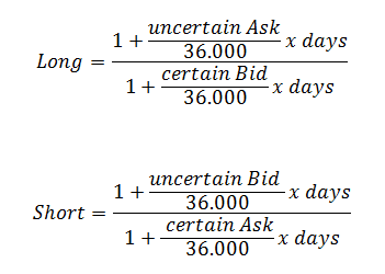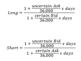The interest applied to each FX CFD position open for more than a Working Day (Multiday), is composed of a fixed and a floating part, as follows: