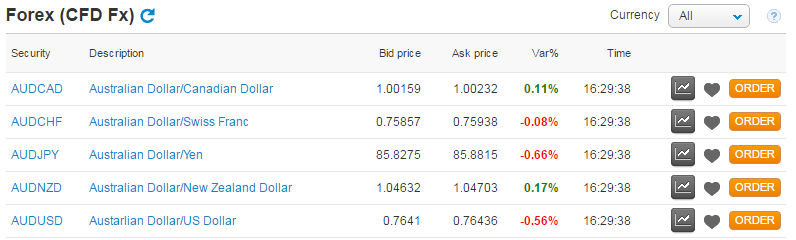 The crosses which can be traded with FinecoBank are listed below with the related spreads: