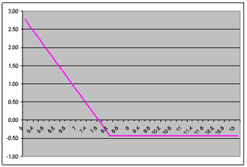 The latter instrument has an asymmetric expiration return profile as is evidenced by the chart below, i.e., against unlimited earnings, the loss is limited to the price paid for the option.