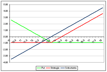 When the underlying decreases, the strategy would make it possible to contain losses up to a reduction of about €12.5, as shown in the chart.